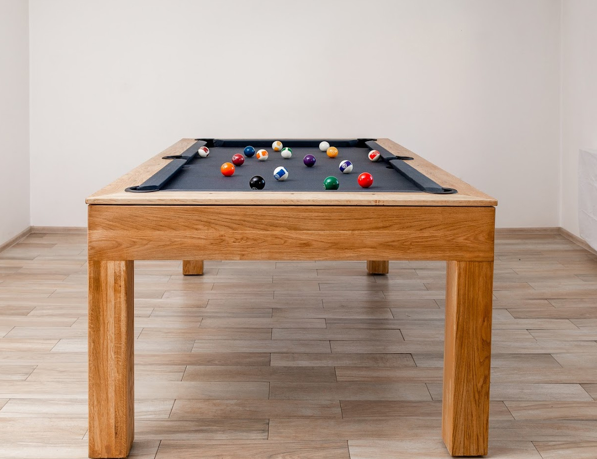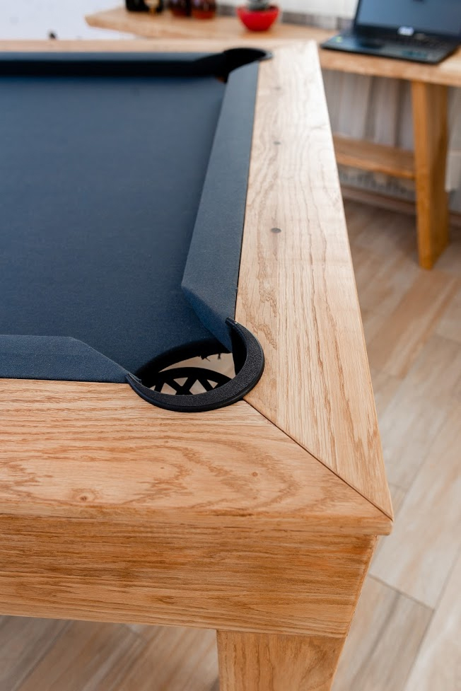 Table de billard Brando en Chène véritable et Ardoise italienne de 19mm. Nous sélectionnons les meilleurs bois pour la confection de nos tables, la structure ainsi que les rails sont réalisés en bois d’hêtre. Nos ardoises proviennent de carrières d’Italie.